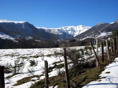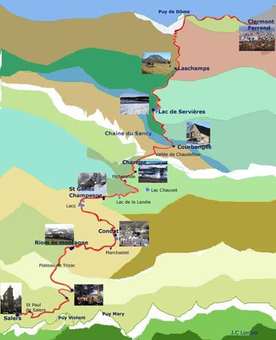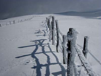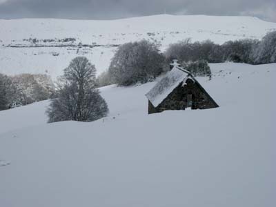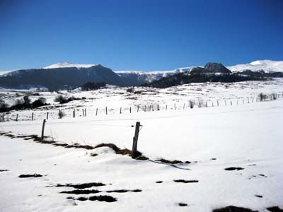 partant de Salers dans le Cantal, avec l'espoir de suivre certains GR® mais l'enneigement, et les conditions
