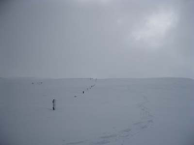 la neige fraîche, qui porte bien pour le moment. Nuages et brouillard