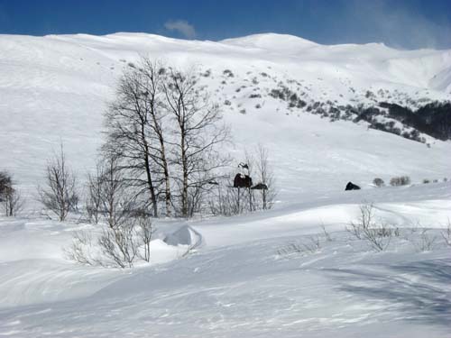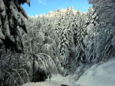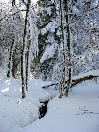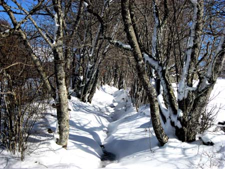 montée dans la neige de plus en plus profonde, au milieu de ce qui