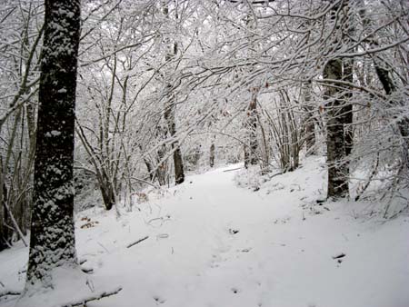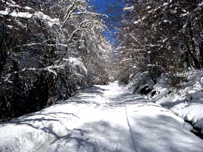 le chemin des chèvres très enneigé! C'est plutôt des marches recouvertes