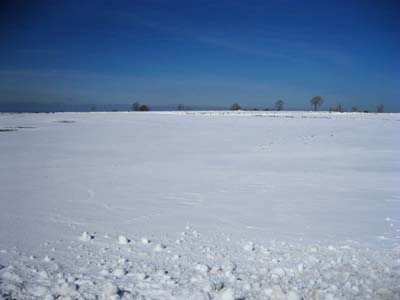 recouverte de neige gelée ; il est midi. Je suis rassuré, c'est la bonne