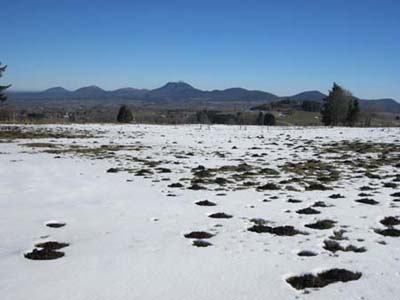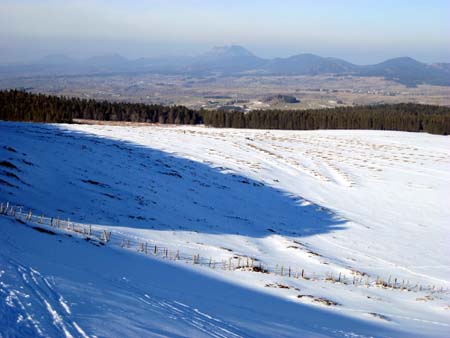 soleil et en t'shirt. La chaîne du Sancy barre l'horizon au sud ouest. De