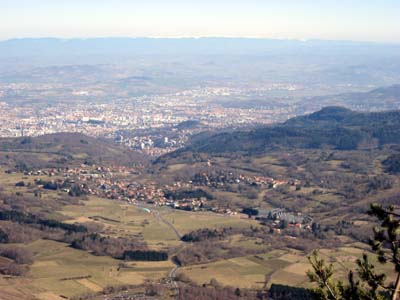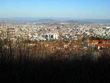 l'autre côté, Clermont-Ferrand et toute la plaine ; en toile de fond le