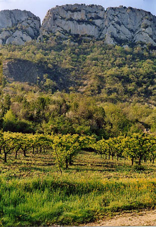 Le chemin serpente entre vergers, lavandes, tilleuls, sous le regard du rocher St Julien.
