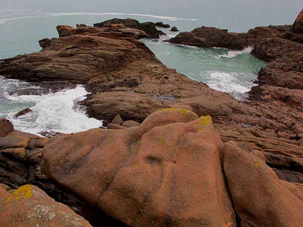 Les vagues, la houle balaient les roches de granit à la Pointe de Squewel.