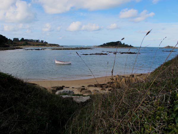 Une autre vue de la plage abandonnée, et les rochers émergeant de l'eau.