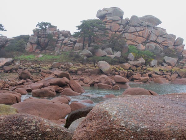 Retour pluvieux sur les granits roses de Porz Rolland.
