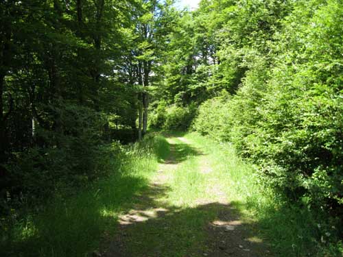 J'arrive à la route vers Récusset, et le GR® continue tout droit par une allée forestière ombragée et agréable.