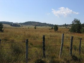 Dans cette étape, c'est le début d'un paysage assez austère : les plateaux de l'Aubrac sont secs et subissent les effets des étés chauds, et des hivers rigoureux. Cependant, les troupeaux de race "Aubrac" restent impassibles en ruminant le bel été qui passe...