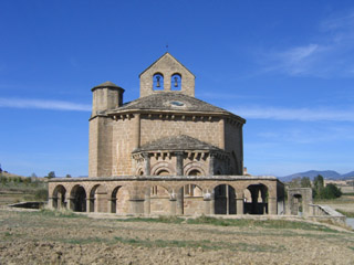 Une fois passé la Sierra del Perdon, on descend parmi les vignes, les oliveraies. Une superbe variante vaut le détour et les quelques kilomètres en plus d'une étape à l'origine courte, mènent à la Chapelle d'Eunate du XIIe siècle : sanctuaire roman octogonal à coupole nervurée et plan grec, entouré d'une arcade circulaire.