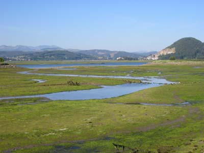 Je quitte Laredo à 8 heures. Les bars sont encore fermés : je déjeunerai plus tard. Je dois suivre le bord de mer par le Paseo, à droite les dunes, l'océan, et à gauche les immeubles résidentiels dont la plupart ont les volets fermés. Il m'a fallu une heure pour arriver au ponton et prendre le bateau navette! Je retrouve Anne-Marie, et d'autres pèlerins... En peu de temps nous traversons la ria de Treto, et arrivons à Santona, ville réputée pour ses conserveries de thon.