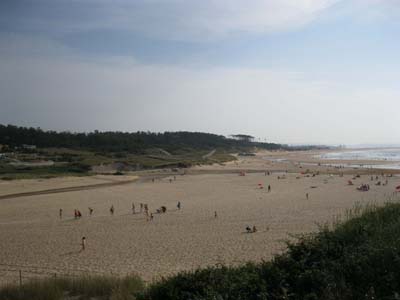 Par une petite route, j'arrive à Loredo à 16 heures. Le topo guide indique une auberge de jeunesse près de la plage; je tourne en rond pendant une demi heure pour la chercher! Je rencontre un jeune espagnol avec sac à dos, qui cherche aussi... On n'arrête pas d'aller et venir. Il interroge les gens qui passent : personne ne connaît. Nous finissons quand même par trouver! Ca ressemble plus à des bungalows parmi les arbres, alors pas étonnant qu'on ne la voit pas! De toutes façons, il y a des jeunes en stage de surf, et c'est complet...