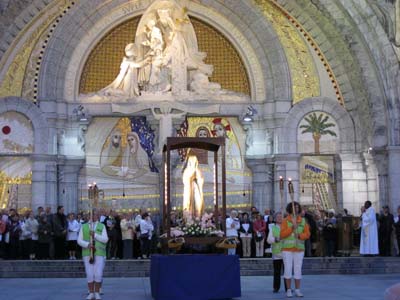 Ce que je trouve frappant ici, c'est le regard des malades, ceux qui se déplacent avec difficultés, ou sont en fauteuils roulants ; et parmi ceux qui ont l'air bien en apparence, combien sont atteints de maladies incurables? C'est à ceux là que je pense en cette journée.