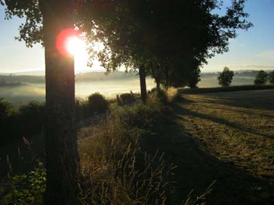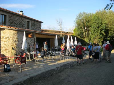 Je me suis réveillé de bonne heure, croyant qu'il y aurait moins de monde en partant tôt... et aussi pour marcher le plus longtemps possible avant qu'il fasse trop chaud! Je vais prendre le desayuno au bar à côté de l'albergue ; à 6 heures et demie du matin, c'est déjà plein : plus une table de libre! J'avais oublié que les espagnols se couchent tard, se lèvent tôt, partent tôt, pour arriver tôt à l'étape et avoir la certitude d'un matelas....