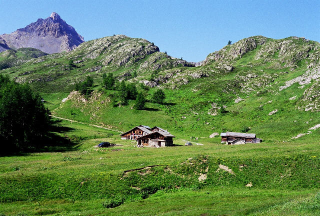 La petite route mène à gauche au refuge de Maljasset, et hameau de MaurIn, où un sentier continue vers l'Italie et le village de Chianale.
