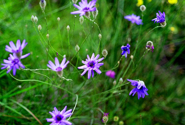 explications sur le terrain, la roche qui compose ce versant, les fleurs,