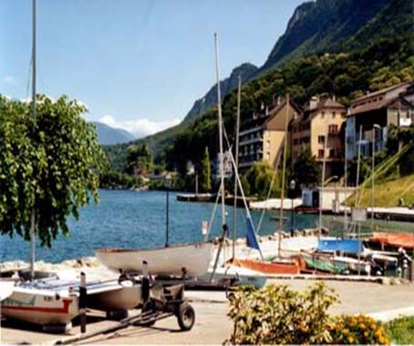 Départ du G.R® 5 pour les Alpes, sur le bord du lac Léman : St Gingolph à 15 km d’Evian, ce village frontière avec la Suisse est coupé en deux. Chaque partie possède son administration. Les postes douaniers n’ont pas disparu, et la surveillance est présente.