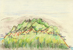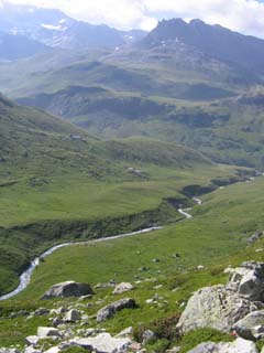 Ces 26 étapes ont été réalisées en fonction de la météo, du temps, de mes envies, sans faire de prévisions à l'avance. Je n'ai fait aucune réservation préalable dans les gîtes, refuges, hôtels ; tout au plus parfois, un appel téléphonique le matin avant de partir, pour le soir. Je n'ai eu aucun problème de place! Je suis parti avec mon portable et une mobicarte à 20 euros. Ce n'est pas un exemple à suivre, mais je n'ai emmené ni topo-guide, ni cartes, ni boussole, ni altimètre, ni gps... Il est vrai que ce GR® 5, ses variantes, et autres sentiers adjacents n'ont plus trop de secrets pour moi. |