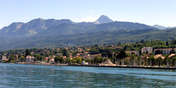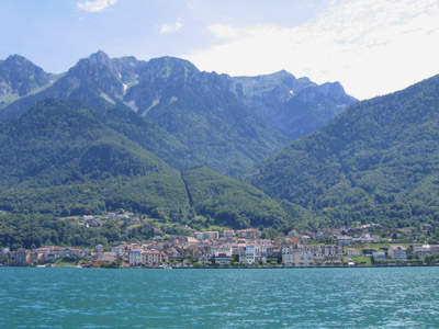 Au lieu de faire du stop, entre Evian et St Gingolph, comme les autres fois, j'ai préféré prendre un bateau : ce qui me donna l'occasion de passer près d'une heure sur le lac Léman, entre Evian, Lausanne, et ce village départ du GR® 5 dans sa partie alpine.