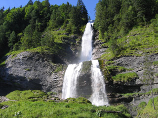 Le ciel est gris, mais il ne pleut pas. Je quitte La Chapelle d'Abondance à 8h20 par un bout de route, et en bifurquant à droite sur un chemin contournant une prairie, et passant en sous bois après avoir traversé la Dranse, torrent bouillonnant, et l'imposante cascade des Mattes. La montée est rude, mais le sentier a été nettement arrangé depuis la dernière fois : il aura fallu une bonne dizaine d'années pour débarrasser les troncs, les arbres, et branchages au sol, qui transformaient cette montée en parcours du combattant!