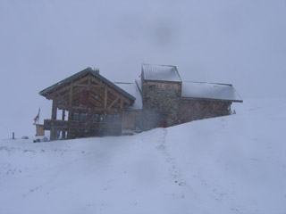 Nous repartons : le sentier grimpe dans des rochers, et des éboulis, avec deux ou trois petits névés, une cascade à traverser. Le refuge de la Croix du Bonhomme est invisible, il faut être à vingt mètres pour le voir! Il est à peine 15 h 30. J'ai besoin de me réchauffer : une bonne soupe de légumes fait le plus grand bien, et je sais qu'ici en plus, elle est bonne.