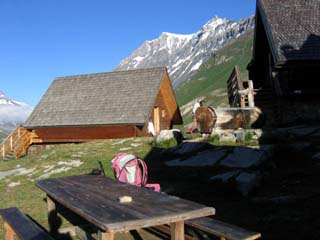 Un peu plus tard, arrivent les trois randonneurs d'hier soir, qui font une partie du GR® 5, un anglais, et Grégory un jeune parti de St Gingolph début juillet, mais on ne s'était encore jamais rencontré. Ce soir c'est presque complet!