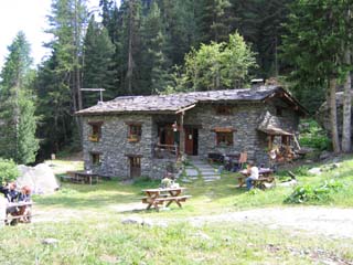 La plupart des randonneurs font le TMB ; certains, des portions de GR® 5. Des dizaines de paires de chaussures sont autour du poêle, et des vêtements en tous genres suspendus au-dessus. Enfin, question ambiance je ne regrette rien, en dehors du repas simple mais copieux : Potage, bœuf bourguignon, Polenta, fromage, gâteau, nous avons droit après à un concert improvisé de guitares, flûte et trompette, par le gardien, le cuistot, et serveurs, à l'occasion de l'anniversaire d'un randonneur.