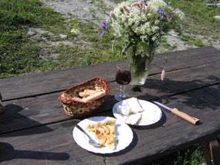 Enfin, comme dirait quelqu'un, çà fait partie de la rando, de la montagne, et ne nous empêche pas de manger : potage, polenta, saucisse, gâteau chocolat... de dormir, et de ronfler pour certains...