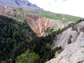 J'arrive au col de Fromage à 14 heures pour la pause casse croûte d'une vingtaine de minutes. Descente par le bon sentier le long duquel ont été planté des mélèzes il y a près de vingt ans, pour servir à la fois de paravalanche et empêcher les gens de couper les lacets, ce qui a toujours pour effet de créer l'érosion, et par temps de pluie de transformer les sentiers en torrents. En terminant par la piste, je suis à Ceillac à 15 h 30. Je m'arrête trois bons quart d'heure ; le temps de faire quelques achats, et de téléphoner au refuge de la Cime que je ne connais pas. J'ai toujours été au gîte les Baladins dans le village, qui est très bien, mais aujourd'hui j'ai envie de voir ailleurs : il y a de la place, et en plus çà me rapprochera pour demain!