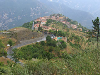 J'apprendrai plus tard, que j'étais sur le sentier des huit vallées! Ca m'aurait fait une belle jambe de le savoir, d'autant que ce sentier contourne une combe pour aboutir sur une route au hameau "Le Blaquet". Plus loin j'arrive au Figaret. Je demande mon chemin à un mécano dans son garage. En se grattant la tête le gars me dit : "Oh mais vous y êtes pas encore! mais je dois descendre, et si vous voulez je peux vous conduire à St Jean La Rivière, et de là vous monterez à Utelle." Je ne peux rien faire d'autre qu'accepter, car marcher sur la route de Vésubie pendant cinq ou six kilomètres, ce n'est pas le Top... et en plus il est déjà 16 h 30.