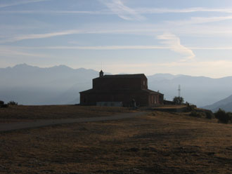 J'avais téléphoné ce matin à l'Hostellerie du sanctuaire de la Madone d'Utelle : je dois monter là-haut, on va m'attendre. Une demi heure plus tard, la pluie semble se calmer. Je me décide à y aller. Le sentier caillouteux contourne la combe, et en quarante cinq minutes j'y arrive!. Il est 19 heures!