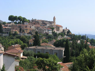 Une petite route conduit au bas de Levens. Il est midi, j'ai envie de faire une pause : je monte dans le haut du village pour acheter de quoi manger, et j'y reste une heure! D'ici aussi la vue est magnifique sur la plaine du Var que l'on découvre jusqu'à la mer.