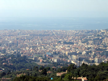 Il n'y a plus besoin de balisage, il faut descendre tout droit : chemin de Gairaut, boulevard, rue, quartier St Maurice il est 11 heures et demie, c'est l'heure intense et chaude de la journée, il faut affronter la ville, ses nuisances, que j'avais un peu oublié : voitures, bus, tramways. L'avenue Malaussena passe sous la ligne de chemins de fer, et après le carrefour, devient l'avenue Jean Médecin, artère principale de Nice.
