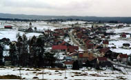 Le grand village de Mouthe s'étire en face, il faut suivre la route pour y arriver.
