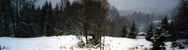 Nous marchons toujours par la forêt, dans la poudreuse. Je m'enfonce jusqu'aux mollets, même en restant dans les traces de Delphine! Le parcours est malgré tout agréable et vallonné. Les sensations sont les mêmes qu'hier... le crissement des raquettes et des plantés de bâtons dans le silence ; et dire que la civilisation est si proche!