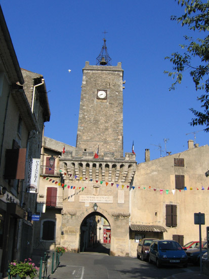 Passage au village d'Alleins : le beffroi de la mairie ressemble étrangement à celui de Cucuron.