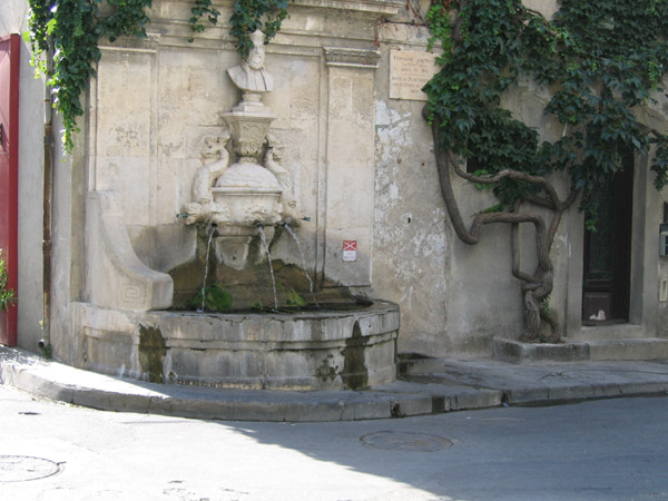 La fontaine de Nostradamus, et sa statue.