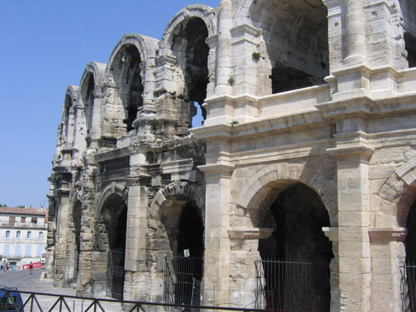Une partie de la façade des Arènes d'Arles.