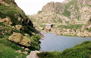 La journée était assez dure, avec une grande descente, une montée, et une nouvelle descente. Une fois en bas, il n’y a plus de balisage. Je demande mon chemin à un ouvrier qui travaille sur le pont. Il faut traverser le barrage du premier lac, et passer sous un tunnel avant de retrouver le sentier balisé contournant la rive. A gauche la trace monte au col de Fenestrelle, où je passerai demain. Il est 16 heures, voila le refuge Genova : c’est un grand bâtiment assez neuf, bien aménagé, tout à fait le style de refuge 3 étoiles que l’on trouve en Italie.