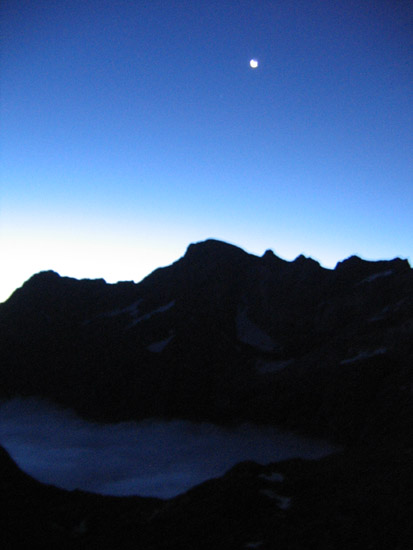 La lune se couche, le soleil se lève au refuge des Sarradets.