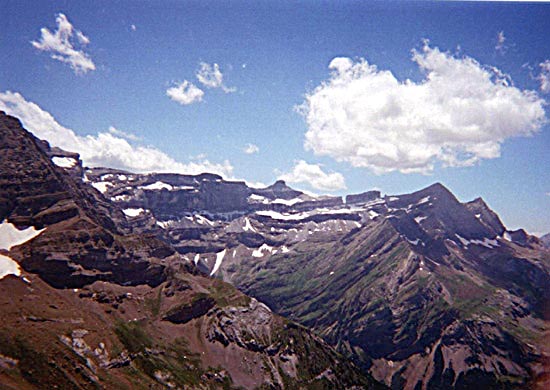 A la Hourquette d'Alans : Au loin le Casque et la Brèche de Roland.