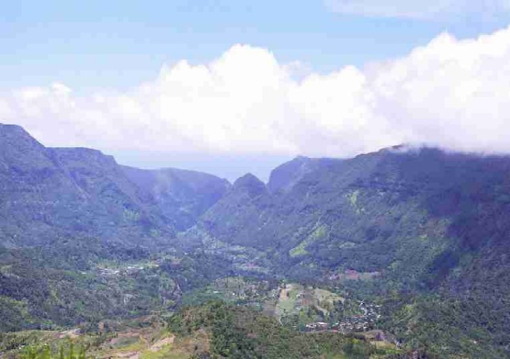 De l’autre côté, le cirque de Cilaos, et le village planté sur un plateau entouré de falaises.