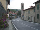 Il faut remonter un peu sur la route, et prendre un sentier sur la droite par la forêt jusqu'au village de Gualdo. Les balisages sont peu nombreux. Descente et montée par des sentiers envahis d'herbes et d'épineux. A partir de Castelcastagnaio il n'y a plus aucun marquage. Il faut suivre le topo qui indique de tourner à gauche, ou monter à droite, ou prendre tout droit à 500m, ensuite aller sud-est à 300m sur un embranchement en Y ... Cela ressemble à un parcours du combattant, d'autant plus que les nombreux embranchements ou carrefours de chemins, les distances indiquées très approximatives, rendent l'orientation très difficile. Sentiers forestiers, ruisseaux , longue montée plein soleil, et une descente par les champs et prairies. Une fontaine fraîche à Campolombardo, des fermes ; le paysage est verdoyant, calme, reposant. L'agriculture est l'activité principale. Une nouvelle grande descente, et j'arrive à Stia, beau village très ensoleillé. Saint François est très certainement passé par ici : Stia se trouve sur la route reliant Florence à Camaldoli, et on entre dans le bourg par le vicolo San Francesco.