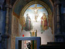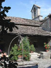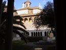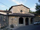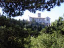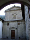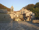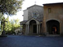 Il est à peine midi, j'ai parcouru la moitié du chemin ; je décide de continuer. Le topo guide n'est pas souvent explicite, mais alors en plus maintenant je l'interprète mal, il me faut plus d'une demi heure pour trouver la bonne direction! Deux kilomètres sur la route entre Stia et Pratovecchio. Chemins en sous bois : le calme, le silence sont revenus, mais par moments des craquements de branches autour de moi me font tressaillir! Il n'y a pourtant personne, mais j'ai le sentiment de n'être pas seul... Serais-je épié? J'essaie de me concentrer sur mon chemin, qui est déjà assez compliqué à suivre... Longues montées, et descentes, parfois dans l'obscurité forestière, mais aussi dans des clairières inondées de soleil. Je passe par le village de Casalino, le chemin grimpe encore pour atteindre une route déserte en pleine forêt de hêtres et de sapins. Je suis arrivé là par erreur ; le chemin est ailleurs! je dois redescendre par cette route interminable. J'ai la chance de voir une biche qui m'observe et s'enfuit. Plus loin apparaissent des toitures : Camaldoli! il est 18 heures... Il y a deux auberges, l'une à coté de l'autre. Je constate avec inquiétude que les deux sont fermées le mardi! En face se trouve le Monastère et la Foresteria. Sur la gauche, l'entrée donne sur une cour et jardin intérieur : il n'y a personne, tout semble désert. J'entre dans la chapelle ; un prêtre prépare l'autel. Me voyant dans ma tenue de marcheur avec un sac à dos, il s'avance vers moi. Je lui explique que je suis pèlerin à pied, et vue l'heure tardive je cherche un lit pour cette nuit! Inutile de dire que je suis fatigué, il le remarque, et parle très bien français. Je patiente quelques instants, et il revient avec une clé. Il doit se dépêcher car la messe est à 18h30, et moi je voudrai y assister!