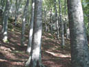 Je suis reposé de ma journée d'hier, et en forme ce matin, c'est tant mieux car l'étape aujourd'hui risque de ressembler à celle d'hier! Je veux être à La Verna ce soir. D'après le topo il y aurait moins de kilomètres qu'hier, soit 23km, mais plus de dénivelés : 1500 m de montées et 1400 m de descentes... Il vaudrait mieux indiquer des heures de marche, car les kilomètres en montagne ne veulent rien dire! En dehors de ces considérations, je quitte Camaldoli à 8h30 avec un soleil radieux. Première montée assez rude dans une forêt de hêtres : je passe près du refuge Cotozzo qui est fermé. Il y a de nombreuses traces de sangliers, des trous et des marques dans la terre, ce qui n'est pas très rassurant. Je fais semblant de ne pas avoir peur : cette forêt est immense et sombre, le soleil ne pénètre pas, et çà sent plutôt l'humidité. Un peu plus loin, les hêtres se mélangent avec de grands pins. Une longue descente me conduit à Badia Prataglia, un village animé : des commerces, et une cour de récréation où des enfants jouent. Je fais une pause d'une bonne demi heure, avant de repartir par le sentier à travers bois jusqu'au village de Frassinetta, dont la fontaine fraîche et bienfaisante permet de remplir ma gourde. Nouvelle montée sur une crête boisée, et descente ensuite jusqu'à Rimbocchi. Je dois demander mon chemin à un villageois : il n'y a aucune indication. Après avoir traversé un ruisseau, je retrouve les marquages du sentier à suivre. A partir de là, la montée est longue et surtout très raide. Plus de 700 mètres de côte! Au bout d'un moment, le sentier devient moins pénible. Un écriteau indique : "Sentiero della Foreste Sacre". Les grands hêtres sont majestueux. Je suis seul à grimper dans ces bois, et pourtant je ressens une atmosphère, une présence impalpable... Il faut passer sous des rochers, une falaise verticale ; tout est imprégné de l'esprit de Saint François. En regardant au dessus j'aperçois les premiers contreforts du couvent. Avant de commencer ce pèlerinage, je souhaitai venir à La Verna et y rester une ou deux nuits, afin de passer une journée complète dans ce haut lieu. Je n'ai rien réservé, et je ne sais même pas si cela sera possible, malgré qu'il y ait un accueil!