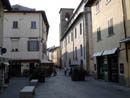 L'église est grande ouverte, et je ne sais pas pourquoi, je suis attiré par une petite porte sur le côté. En m'avançant je vois sur le mur une plaque " Casa Parrocchiale". J'entre ; une dame fait le ménage! J'explique que je suis pèlerin français à pied sur le Cammino di San Francesco, et je cherche à me loger ce soir ; un matelas ou un tapis sur le sol dans un coin ferait l'affaire! Elle réfléchit un instant et me dit qu'elle ne va pas laisser dormir un pèlerin n'importe où! Il n'en est pas question. Elle pourrait peut-être me loger! Elle a de la place, et une chambre d'ami inoccupée!... Je me sens gêné, et embarrassé. Je ne sais pas quoi dire et quoi faire! Elle insiste pour m'héberger...