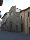 Il y a un hôtel trois étoiles sur la via principale, mais d'après l'importance de cette cité, je pense qu'il doit y avoir un hébergement conforme à mes souhaits de pèlerin. L'église est souvent un lieu de rencontre, elle est ouverte mais il n'y a personne! Après un moment de prières, je retourne à mes recherches... J'ai remarqué qu'il y avait la Confraternita di Misericordia qui est une organisation d'ambulanciers et de protection civile pouvant aider à se loger provisoirement. En effet, on m'indique un logis pour les pèlerins : l'ancien asilo! Le mot peut faire peur, mais il ne m'effraie pas. Il y a deux hommes à l'accueil, sans doute des bénévoles, heureux de voir un pèlerin français à pied de Florence à Rome, et surtout quand ils me demandent mon âge : 64 ans, les "complimentes" et autres félicitations pleuvent! Je suis content d'être ici pour 7 euros, une sorte de dortoir avec quatre lits où je suis seul. La douche fonctionne mais il faut attendre plus d'une heure que l'eau chauffe, alors je me lave à l'eau froide, ce qui rend les deux bénévoles encore plus admiratifs!