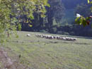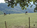Demi tour... Je remonte en regardant de chaque côté s'il n'y a pas une indication et un sentier caché par des buissons, comme cela m'est déjà arrivé! J'arrive ainsi devant le centre équestre où j'étais déjà passé! Mais alors là, je suis accueilli par deux énormes chiens, pas commodes du tout : on ne s'était pas vus au premier passage, mais au deuxième ils doivent me trouver bizarre! Ce qui m'importe, c'est de trouver mon chemin! et apparemment il n'y en a pas d'autres... D'un seul coup j'entends des gens crier après les chiens, qui repartent têtes basses sans broncher, et une voix appelle "Jean-Claude"... Il me faut quelques secondes pour réaliser : est-ce moi qu'on appelle? et qui me connaît ici au milieu de ces prairies à perte de vue, et de ce centre équestre où il n'y a rien d'autres que deux chiens! Je n'ai pas rêvé... on m'appelle plusieurs fois, et je vois à la fenêtre du bâtiment, Maria et son amie qui s'agitent, pendant qu'un homme tient les chiens en respect! Elles arrangent ici la salle pour une réunion préparatoire au pèlerinage à Lourdes.