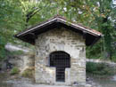 Après avoir contourné la muraille, j'arrive devant la chapelle aux oiseaux, construite à l'endroit même ou des oiseaux ont accueilli en chantant, Saint François pour sa première visite à La Verna. Une grande allée de pierres mène à l'entrée de l'esplanade devant la chapelle Santa Maria degli Angeli, et la Basilique : il est 17h 10.