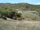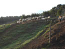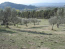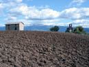 Il tombe quelques gouttes. Le chemin descend dans un vallon parmi les oliviers et les vignes, et remonte ensuite au milieu des champs labourés. J'entends quelques coups de fusils et des aboiements de chiens! J'espère toujours que les chasseurs font la différence entre le marcheur sac au dos, et le lièvre, ou plus vraisemblablement avec un chevreuil!